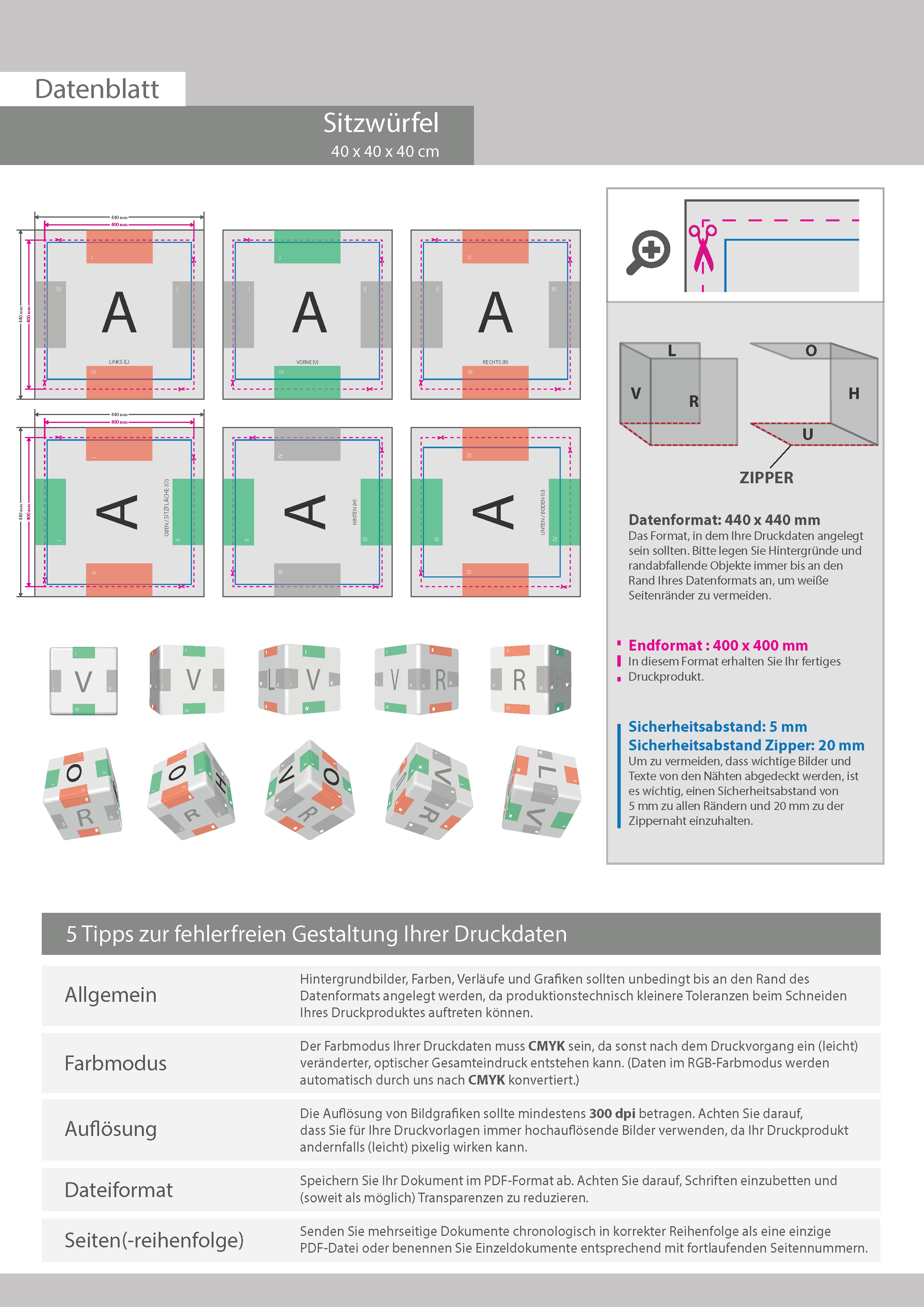 Wechselbezug für Indoor Sitzwürfel Cube 40, komplett vollflächig 4-farbig bedruckt
