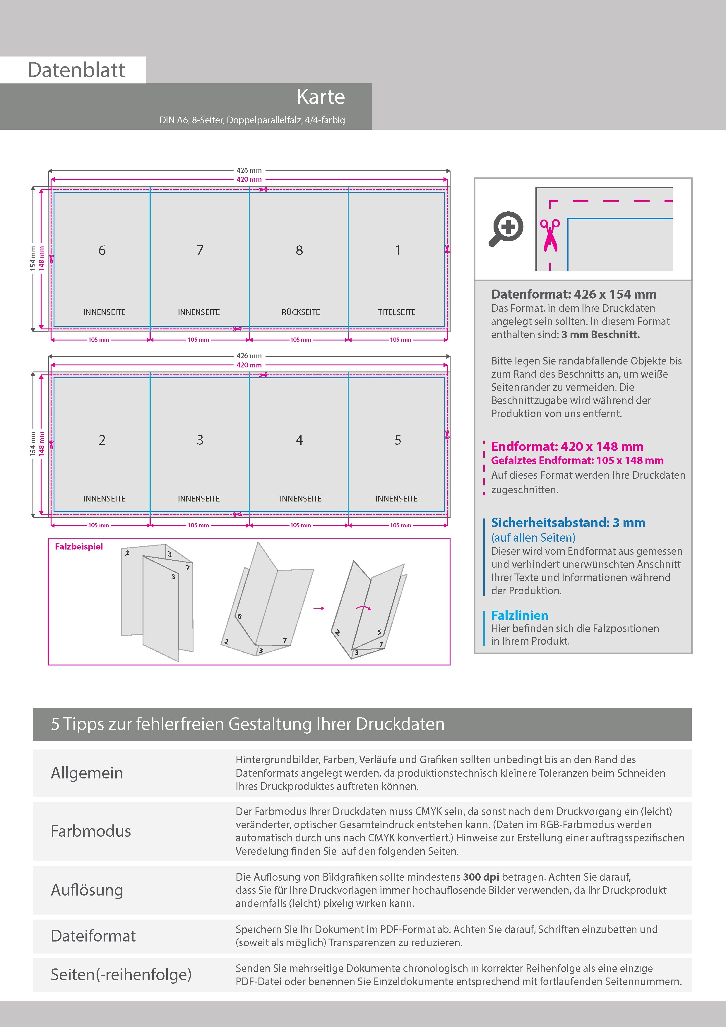 Einladungskarte, gefalzt auf DIN A6, vertikaler Doppelparallelfalz, 8-seitig