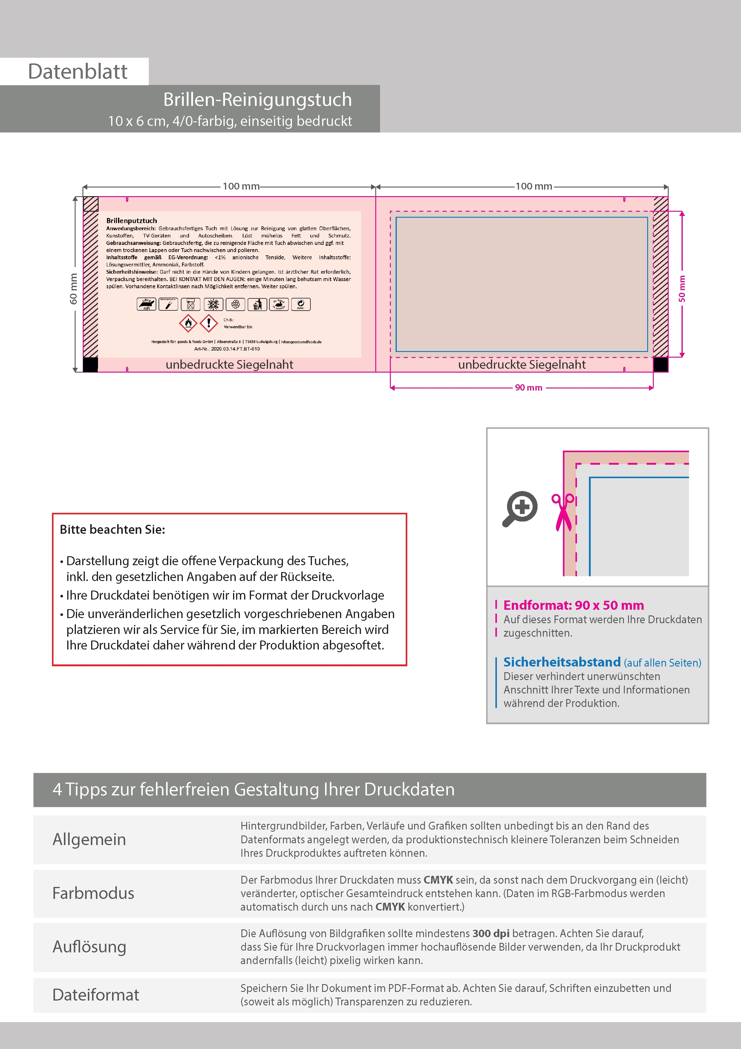 Feuchtes Brillen-Reinigungstuch, 10 x 6 cm, 4/0-farbig einseitig bedruckt