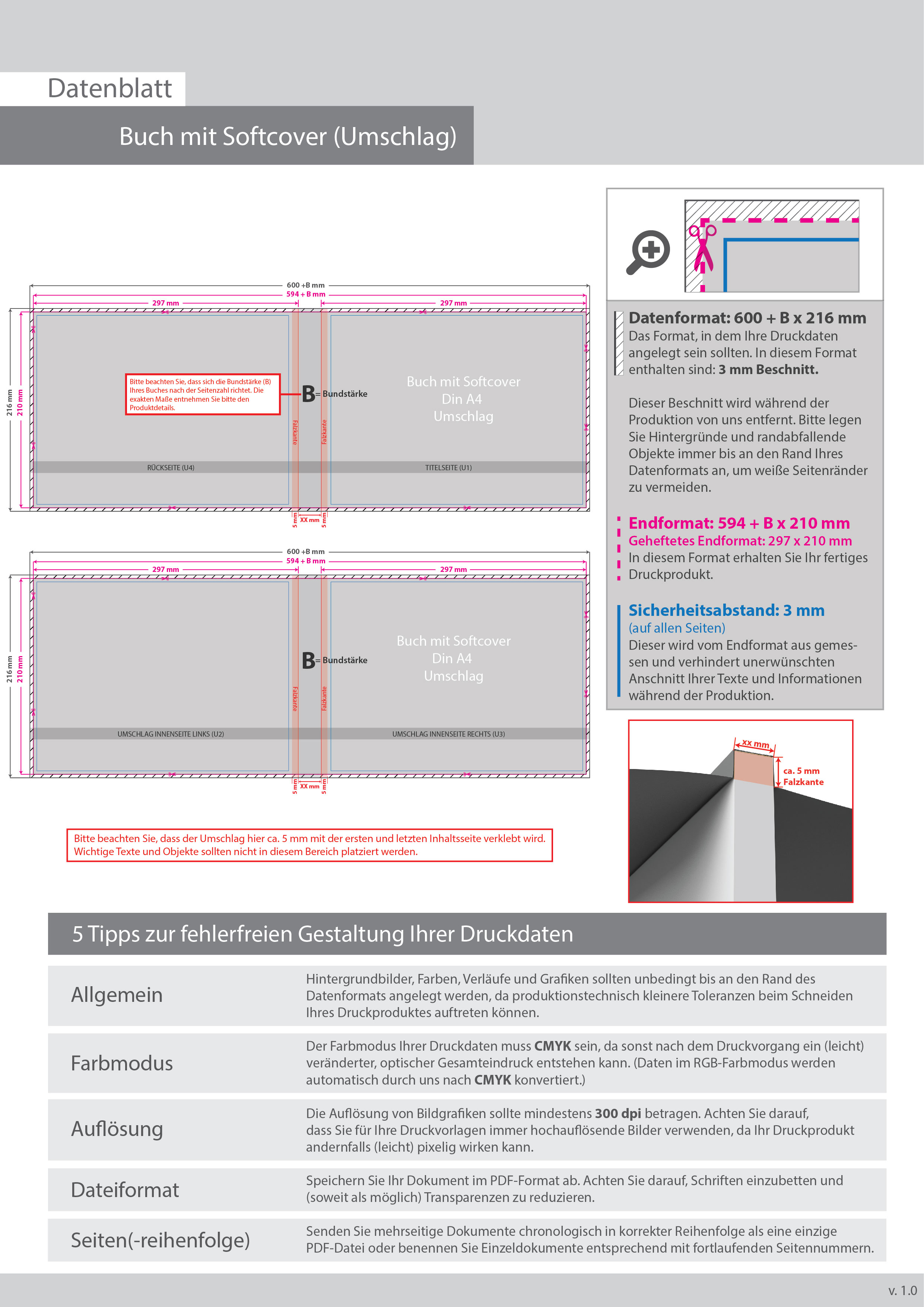 Buch DIN A4 quer, Umschlag: Softcover 4/4-farbig